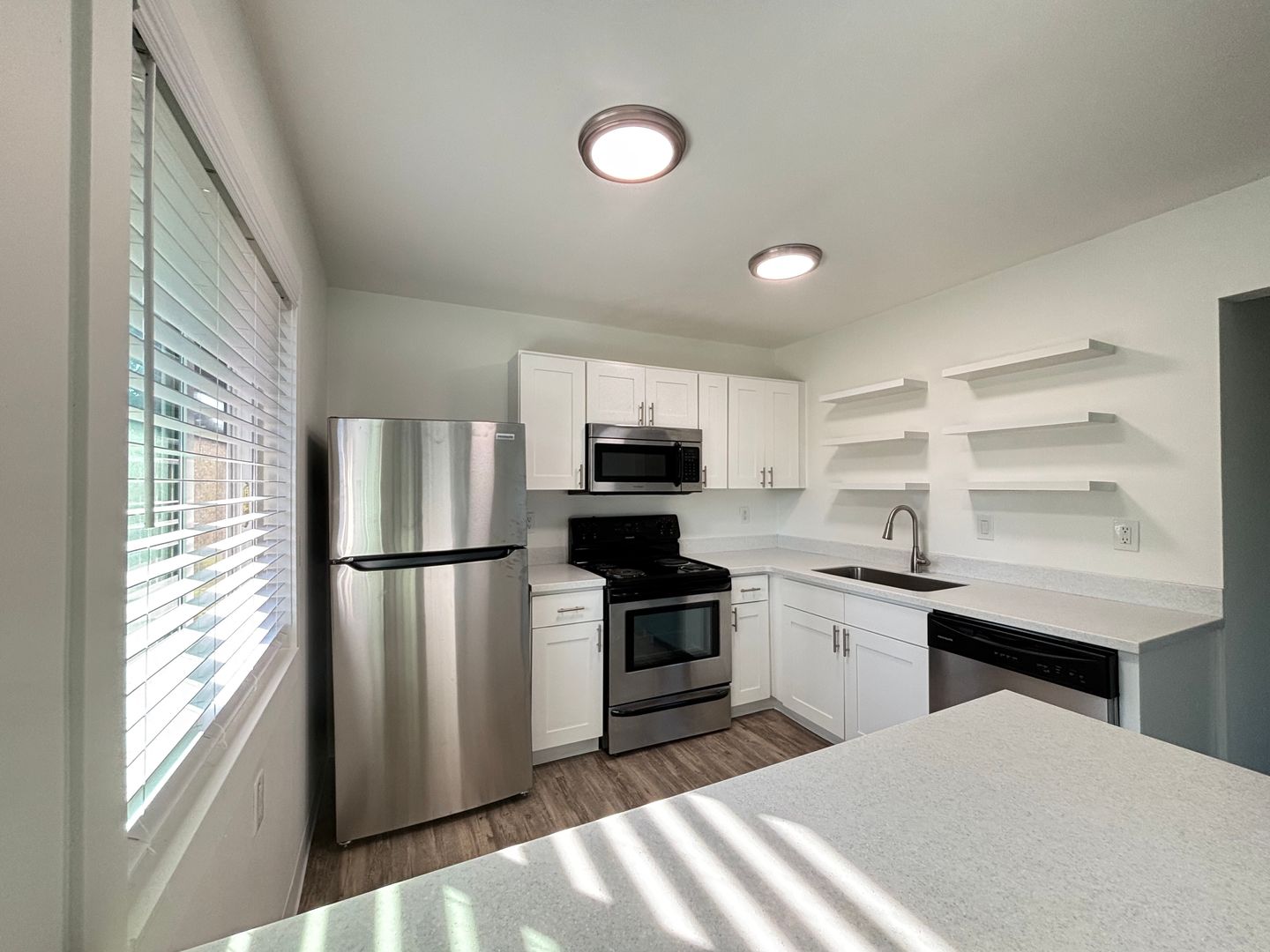 J3 Apartments in Beaverton, Oregon offers a modern home design with an ideal location. Inside your unique home you'll have designer cabinetry, updated appliances, under-mount sinks and wood style flooring throughout the common area. Some units have stainless steel appliances, kitchen islands, and quartz countertops! Enjoy patios and balconies with views of our courtyards and seasonal pool area.