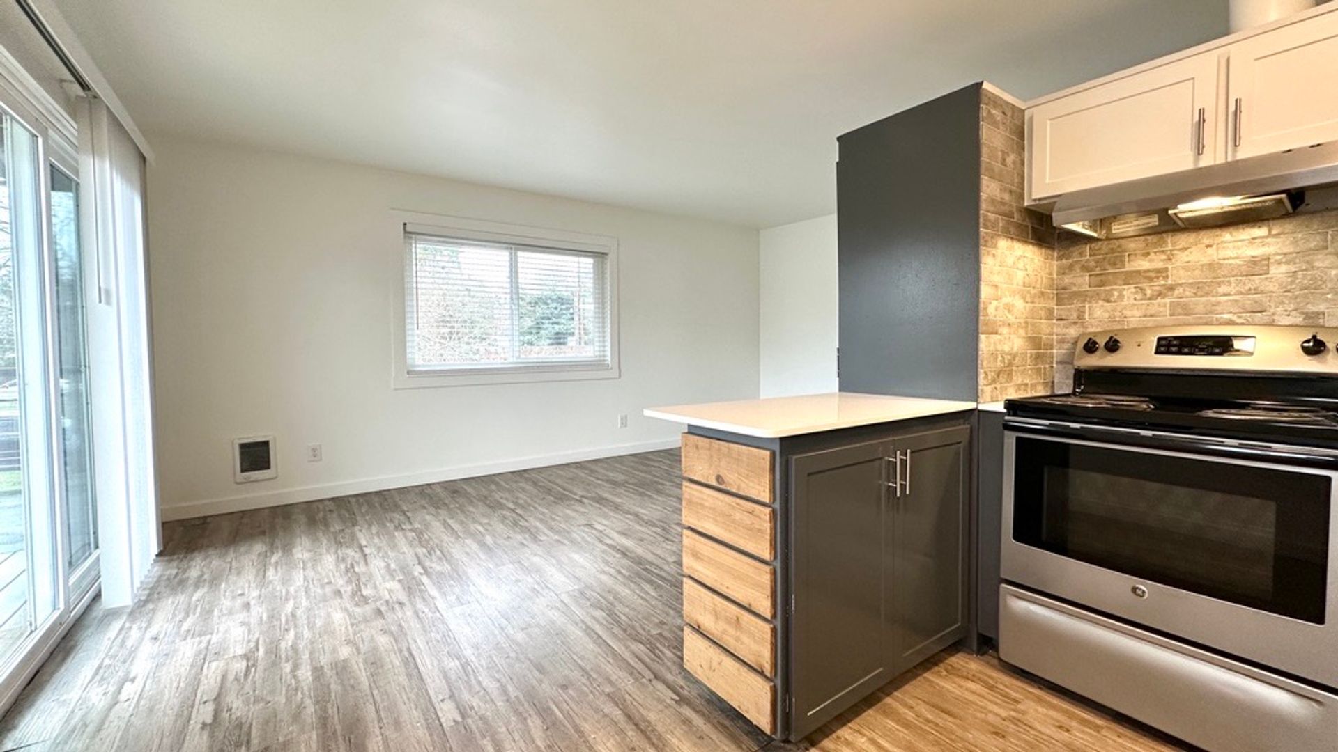 J3 Apartments in Beaverton, Oregon offers a modern home design with an ideal location. Inside your unique home you'll have designer cabinetry, updated appliances, under-mount sinks and wood style flooring throughout the common area. Some units have stainless steel appliances, kitchen islands, and quartz countertops! Enjoy patios and balconies with views of our courtyards and seasonal pool area.